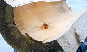 Ho a casa una sezione di tronco, di un grosso pino marittimo, che usavo come ceppo (curioso il destino di questa porzione di albero). Ebbene, l’altro giorno mi si è rotto tra le mani (troppi colpi, lo hanno diviso in due).